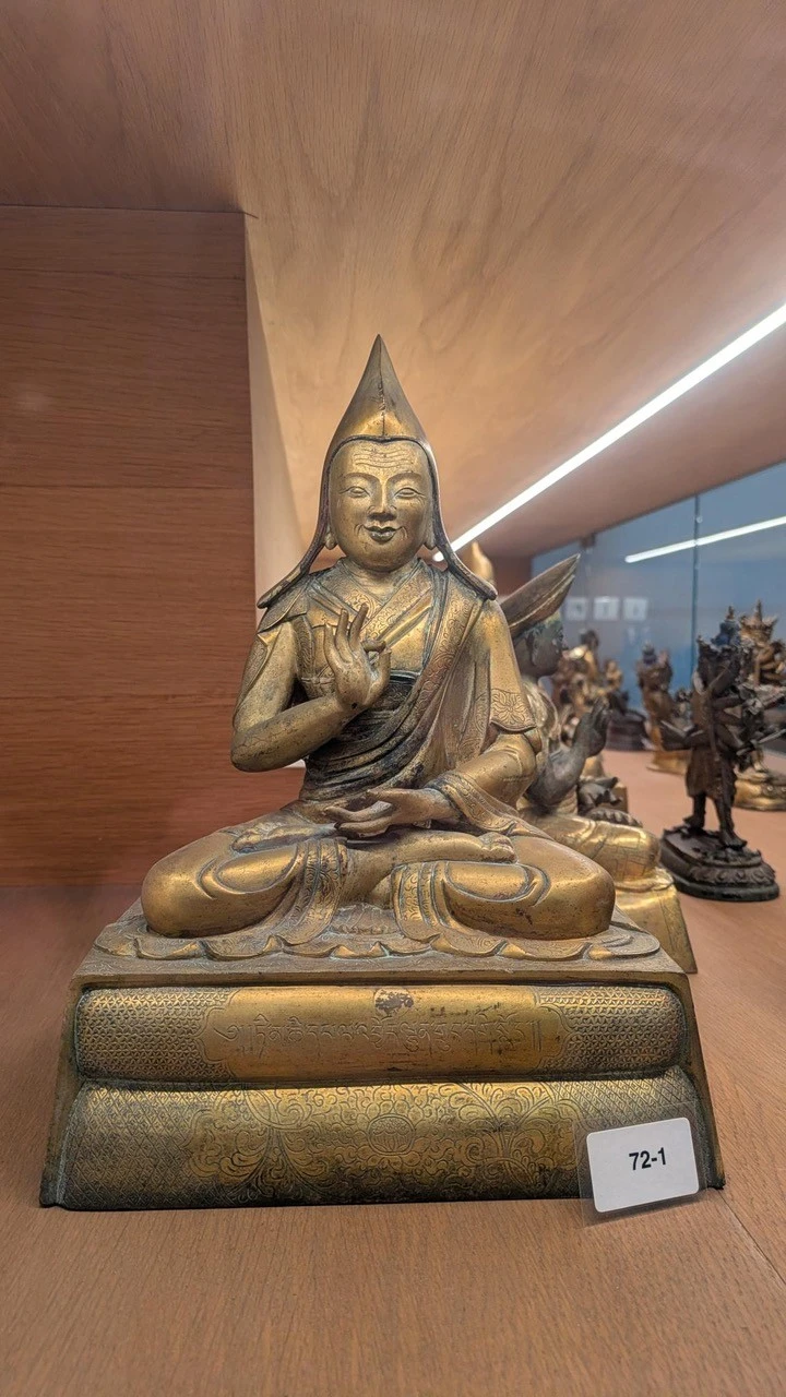 The first is a collection of Chinese rubbings, partly produced and assembled by scholars including Édouard Chavannes and Paul Pelliot. The second consists of Tibetan statuettes, associated primarily with Jacques Bacot and Paul Pelliot. The third is a collection of palm-leaf manuscripts assembled in India under the direction of Jean Filliozat and N. R. Bhat, now preserved at the EFEO Centre in Pondicherry.